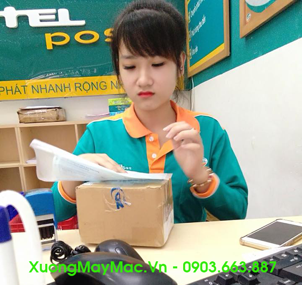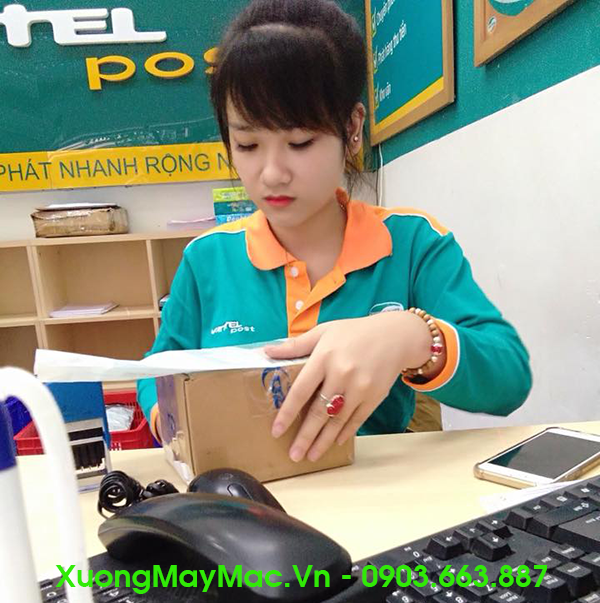 Nữ nhân viên Viettel Post đang kiểm và nhập thông tin gửi hàng cho Khách hàng