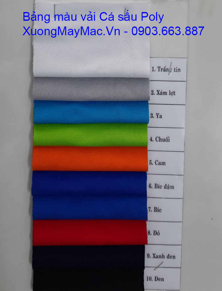 Để tiện cho Quý khách hàng tham khảo và lựa chọn màu vải thun Poly khi có nhu cầu đặt may đồng phục áo thun, TALYNO xin gửi tới Quý khách hàng và Đối tác Bảng màu vải thun cá sấu Poly hiện nay mà xưởng may đồng phục TALYNO chúng tôi đang cung cấp.