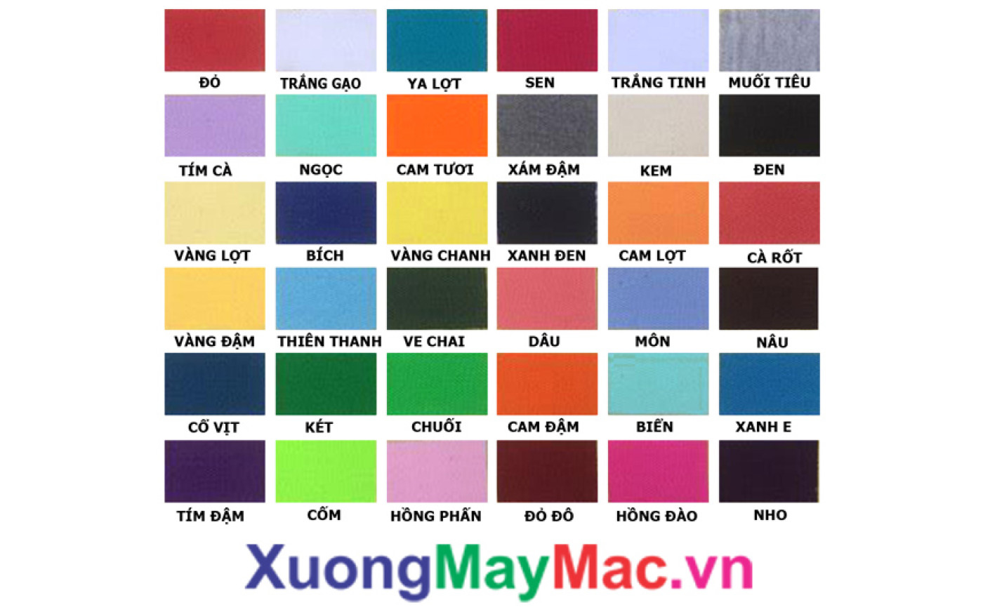 BẢNG MÀU VẢI THUN MAY ĐỒNG PHỤC