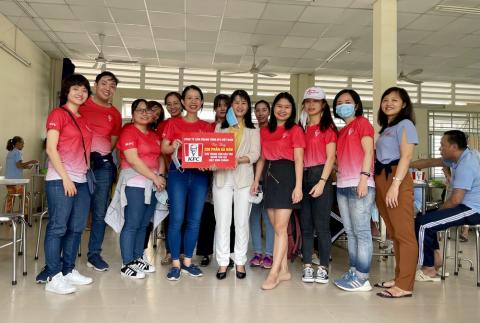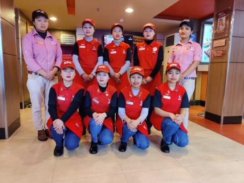 Hinh anh KFC nhân viên với áo thun đồng phục màu đỏ nổi bật