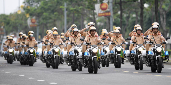 Các chiến sĩ công an giao thông tham gia dẫn đoàn đại biểu tại diễn đàn APEC 2017