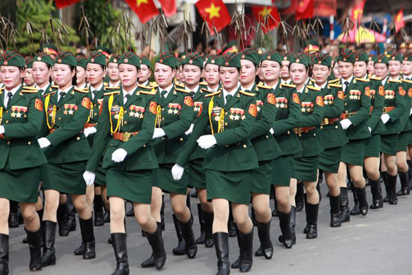 Các nữ chiến sĩ quân đội tham gia diễu hành tại lễ duyệt binh