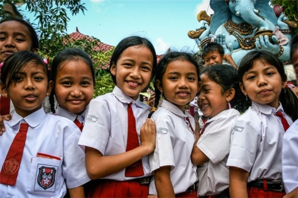 Ở Indonesia, đồng phục đi học là bắt buộc với mọi học sinh. Học sinh tiểu học mặc áo sơ mi trắng ngắn tay. Nam sinh mặc quần sóc đỏ. Nữ sinh mặc chân váy dài đến dưới đầu gối.