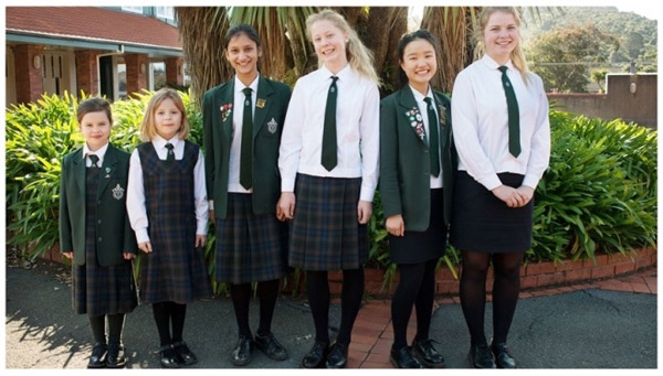 Các trường học của New Zealand theo phong cách đồng phục của Anh, tuy nhiên, một số trường công lập thay áo khoác với cà vạt và quần dài bằng áo thun rộng và quần sóc ghi cho nam.