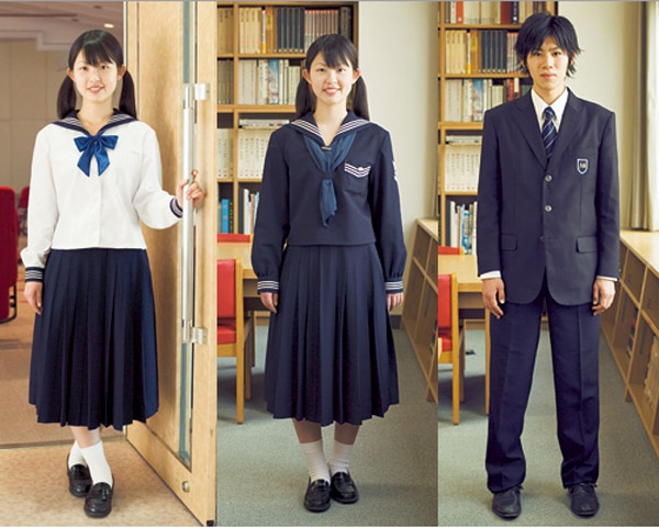 Các bạn nam thì đứng đắn và trông trưởng thành khi khoác lên mình bộ vest xanh tím than cùng caravat đỏ, trong khi các bạn nữ mặc bộ đồng phục thủy thủ cực cute. Theo truyền thống, bộ đồng phục này gồm áo trắng kiểu cổ bẻ thủy thủ có thắt nơ, kết hợp với áo tay bồng cùng một chiếc váy xếp ly. Viền áo thường được chọn trong ba màu: đỏ, xanh dương, xanh lá.
