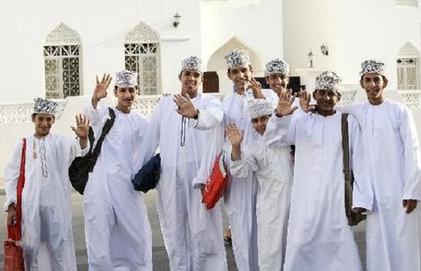Trang phục của học sinh Oman mang đậm tính dân tộc sâu sắc. Trong khi các bạn nam mặc những chiếc áo trắng dài và đội mũ lệch thì các bạn nữ mặc quần áo truyền thống và phải đeo mạng che mặt ngay cả khi đến lớp. Đây là một phong tục lâu đời của các quốc gia theo Hồi giáo.