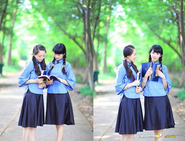 Nhắc đến sườn xám người ta liền nghĩ ngay đến Trung Quốc, một nét văn hóa đặc trưng của đất nước này. Với cổ áo được cách điệu từ sườn xám cùng chiếc váy xanh, nữ sinh Trung Quốc không thể dấu đi nét trẻ trung, tươi tắn khi khoác lên mình bộ đồng phục học đường này.