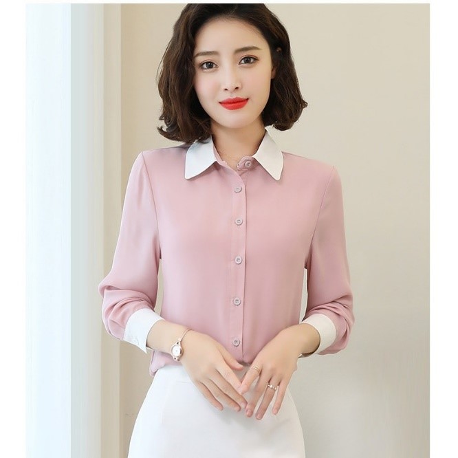 - Sơ mi nữ cổ tròn, tay lỡ, bo nhẹ