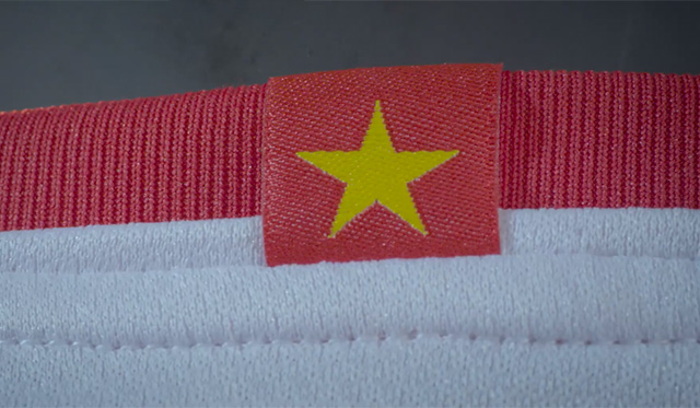 Người sử dụng mẫu áo đấu này có thể dễ dàng nhìn thấy bên trong mác áo có in hình bản đồ Việt Nam. Hình ảnh thể hiện chủ quyền dân tộc với biểu tượng hình chữ S quen thuộc cùng 2 ngôi sao đánh dấu vị trí hai quần đảo Trường Sa và Hoàng Sa của Việt Nam.