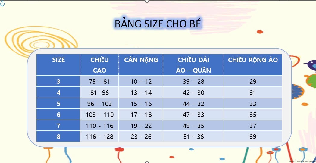 Talyno sẽ cung cấp bảng size chart chuẩn theo độ tuổi để đại diện nhà trường đối chiếu.