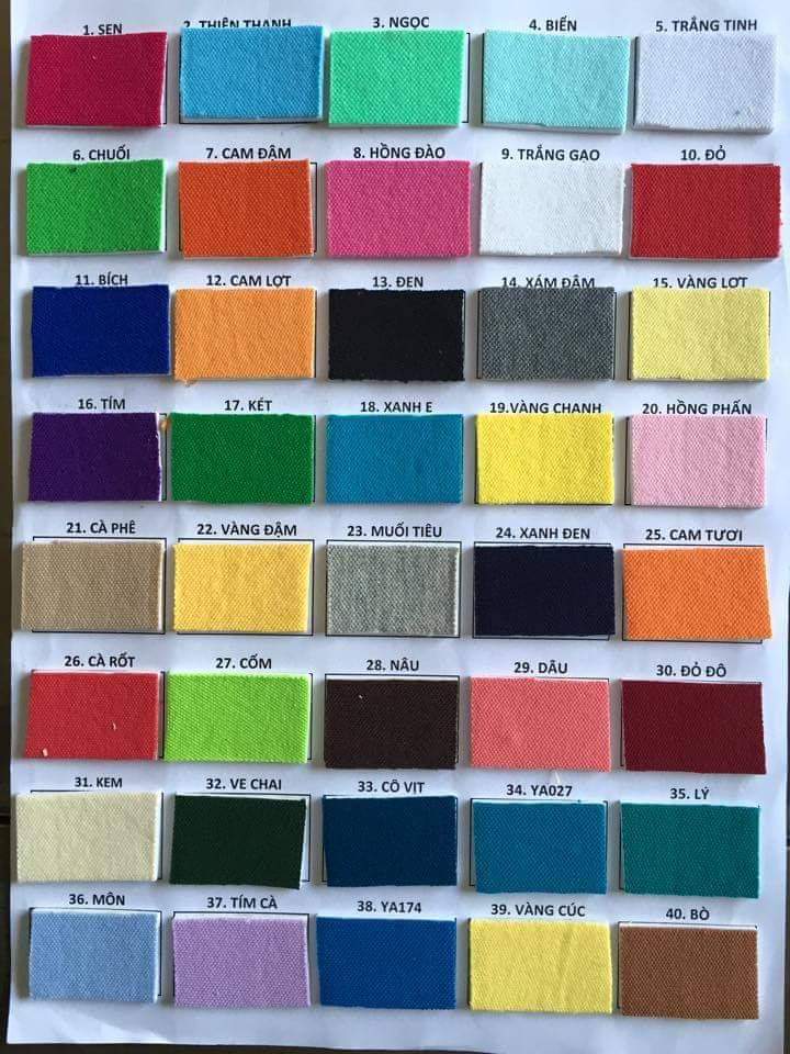 - Cotton 65/35 hoặc 100% cotton: thấm hút tốt, dễ mặc