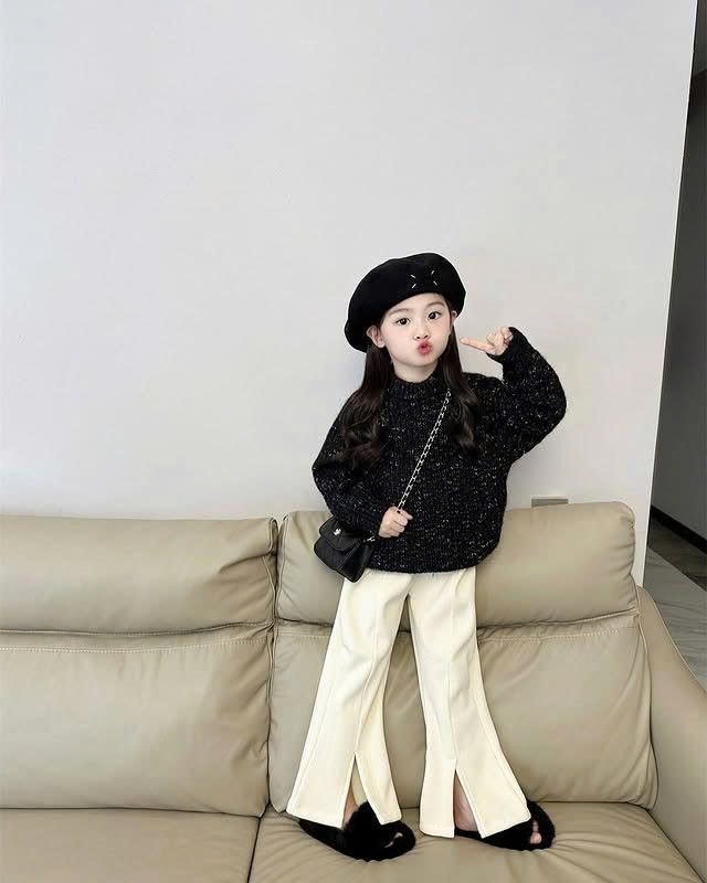 Phong cách thời trang nhẹ nhàng, nữ tính cho bé gái. Thiết kế cổ lọ giúp giữ ấm cổ và phối với váy yếm denim hoặc váy len rất hợp xu hướng.