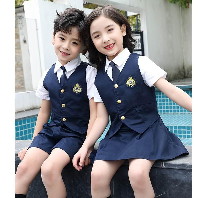 Thiết kế vest liền hiện đại với áo sơ mi trắng và cà vạt, mang đến vẻ ngoài lịch lãm, dễ thương và chỉnh chu cho bé trai và bé gái trong môi trường học đường chuẩn quốc tế.