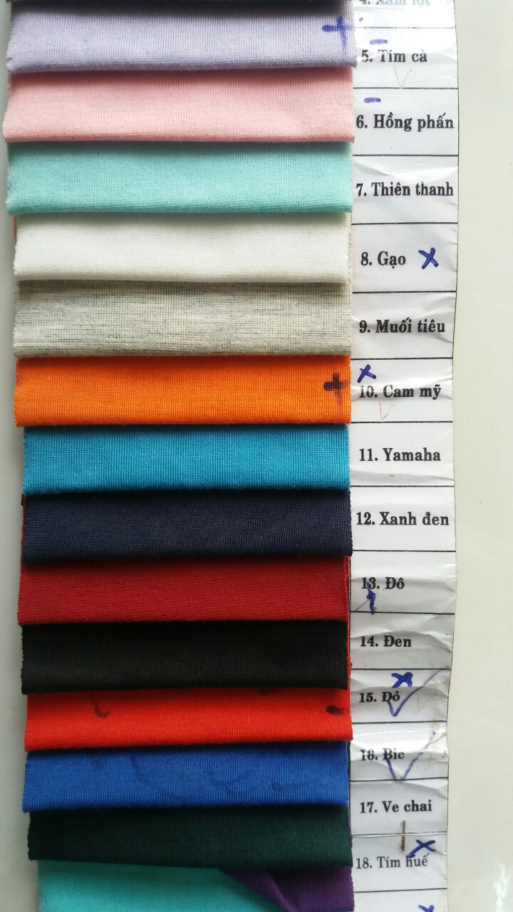 Bảng màu của vải thun SU Dày