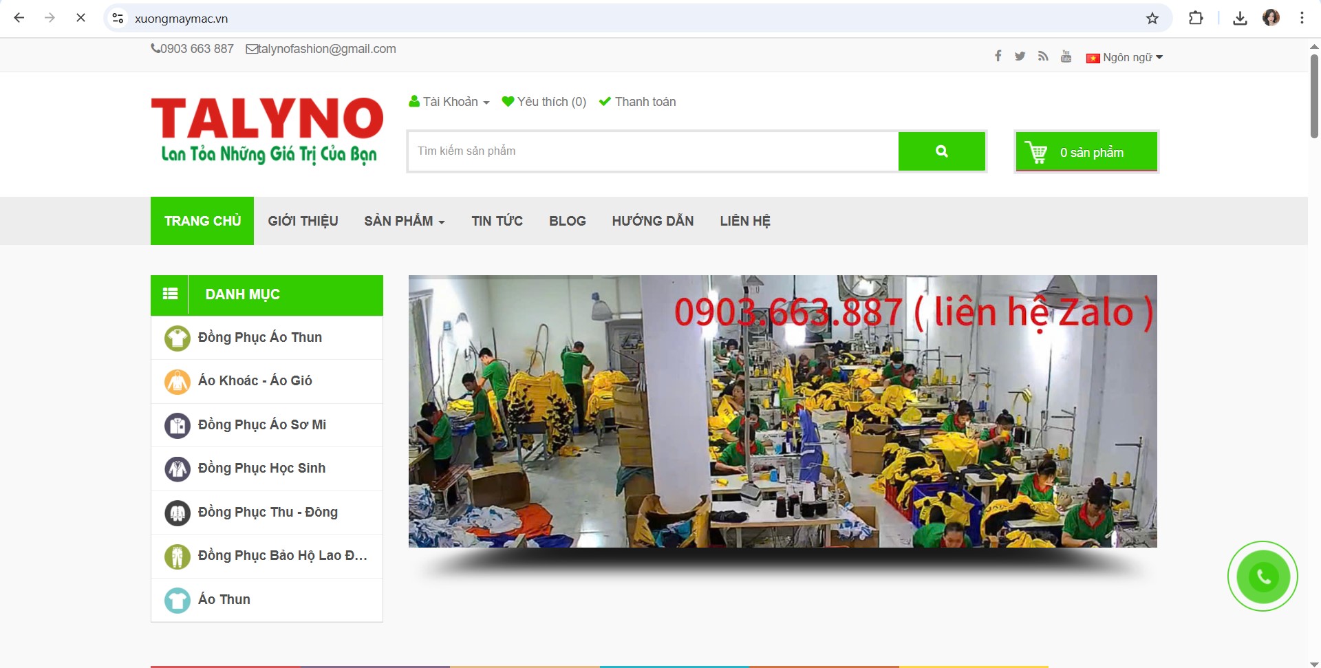 Thông tin liên hệ xưởng may Talyno: