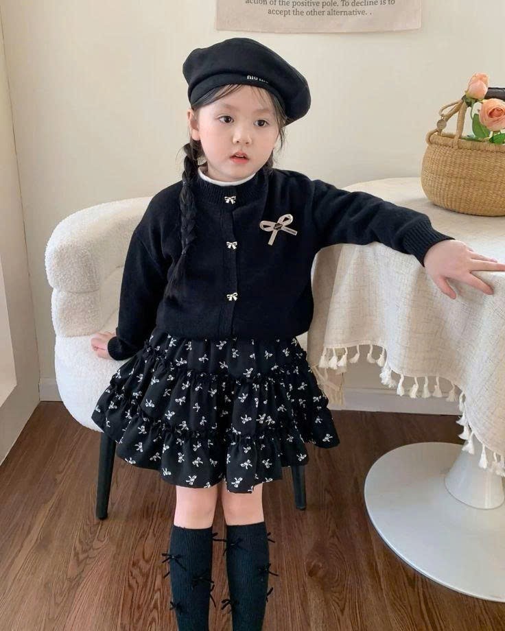 - Áo hoodie/ len kết hợp chân váy/váy yếm cho bé gái