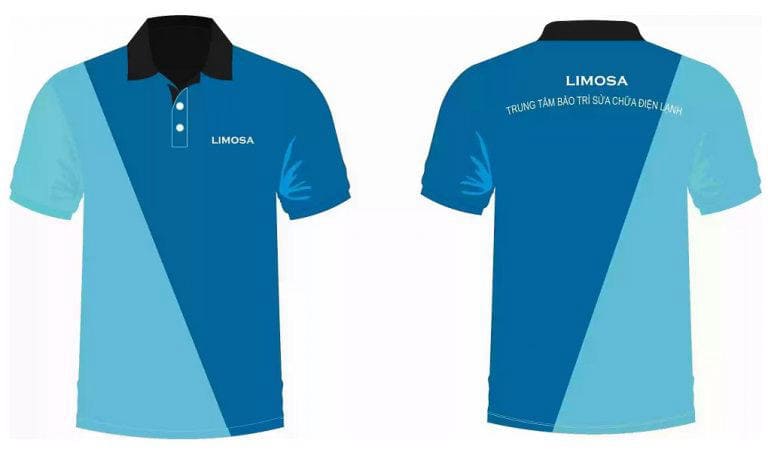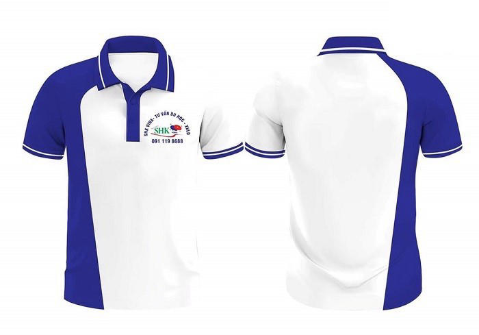 Với thiết kế nhã nhặn, xanh dương chủ đạo phối cổ đen tạo sự sang trọng, đây là mẫu áo được nhiều doanh nghiệp chọn để in logo chuyên nghiệp.