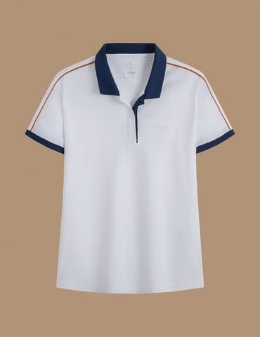 - Áo thun cổ trụ phối nẹp và viền tay khác màu