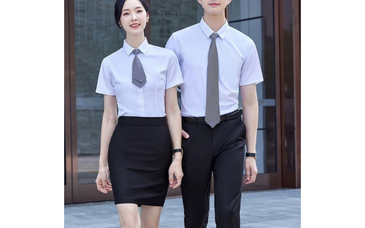Đồng phục công sở hè tay ngắn cho nam và nữ – thiết kế đơn giản, thoáng mát, phù hợp với môi trường làm việc hiện đại và năng động.